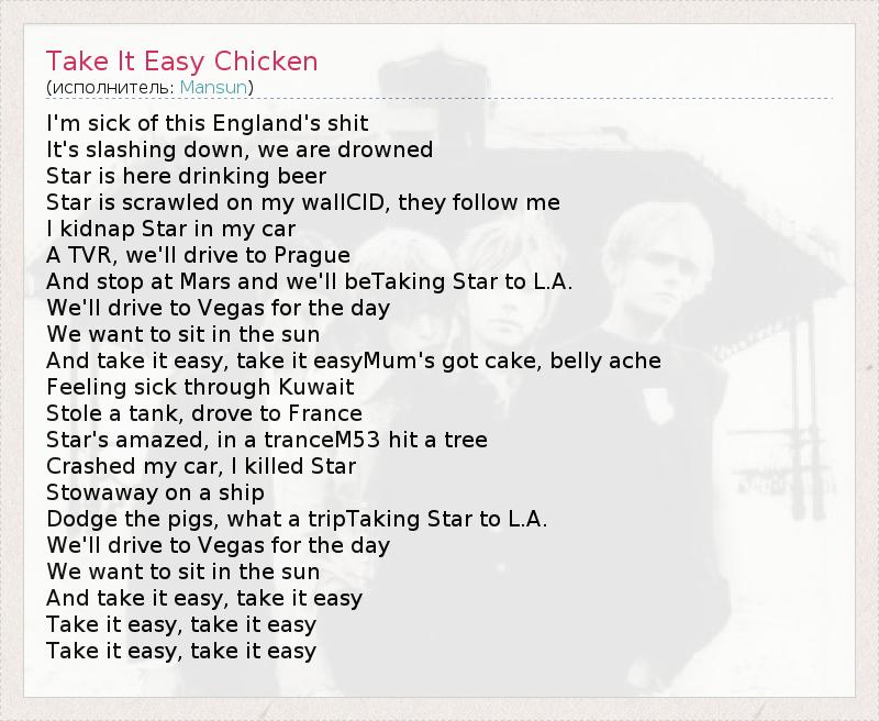 А как ты думаешь, о чем песня "Take It Easy Chicken" ?