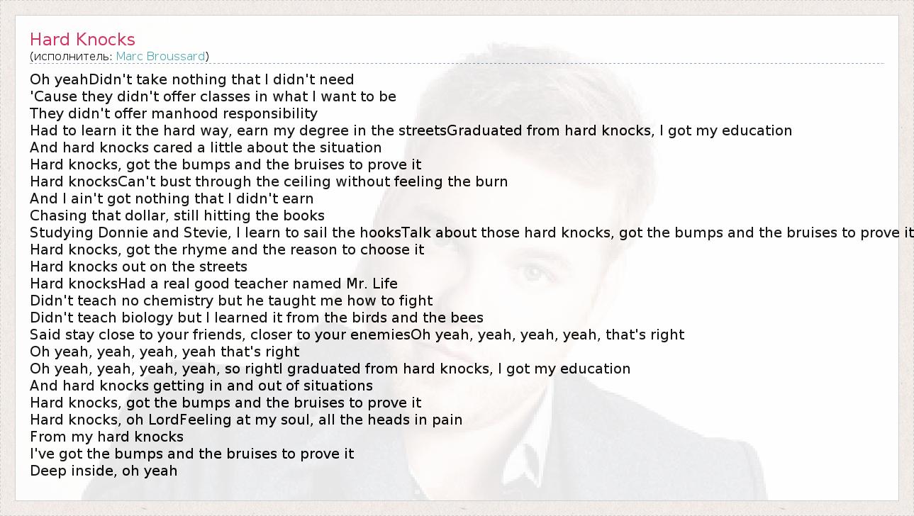 А как ты думаешь, о чем песня "Hard Knocks" ?