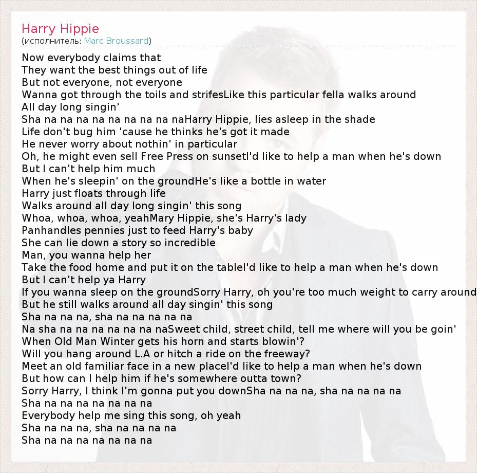 А как ты думаешь, о чем песня "Harry Hippie" ?