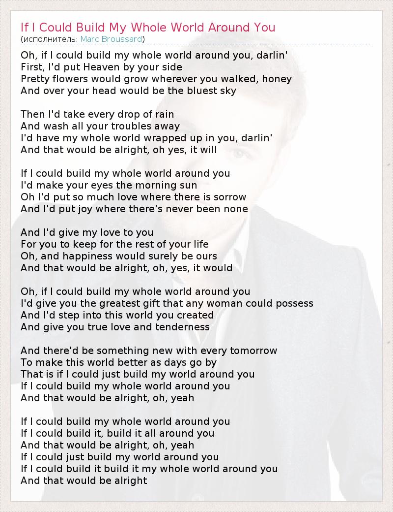А как ты думаешь, о чем песня "If I Could Build My Whole World Around You" ?