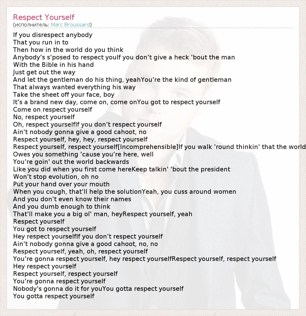 А как ты думаешь, о чем песня "Respect Yourself" ?