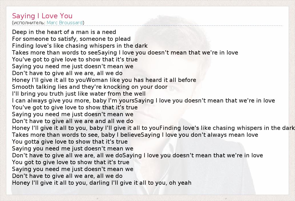 Takes more than words to seeSaying I love you doesn't mean that we're in love