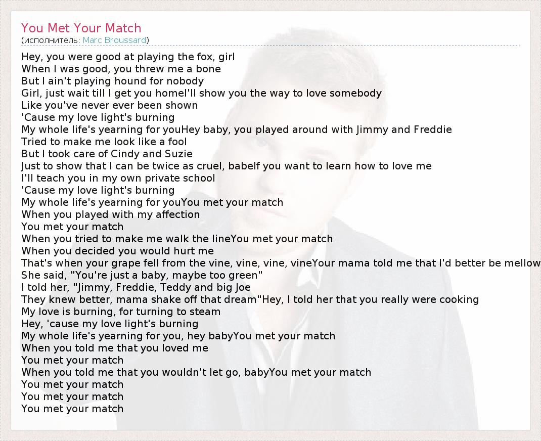 А как ты думаешь, о чем песня "You Met Your Match" ?