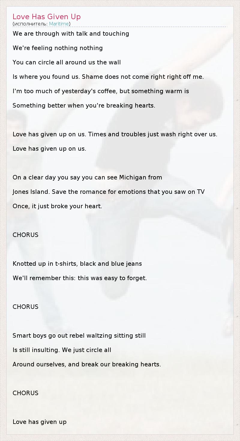 А как ты думаешь, о чем песня "Love Has Given Up" ?