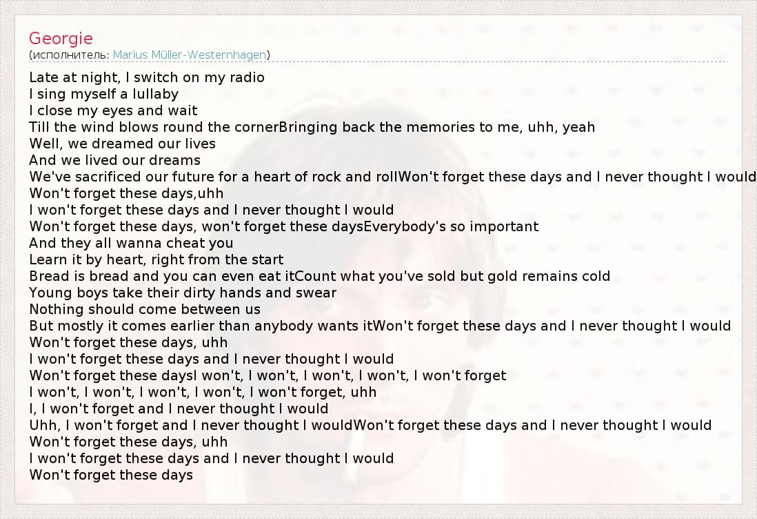 А как ты думаешь, о чем песня "Georgie" ?