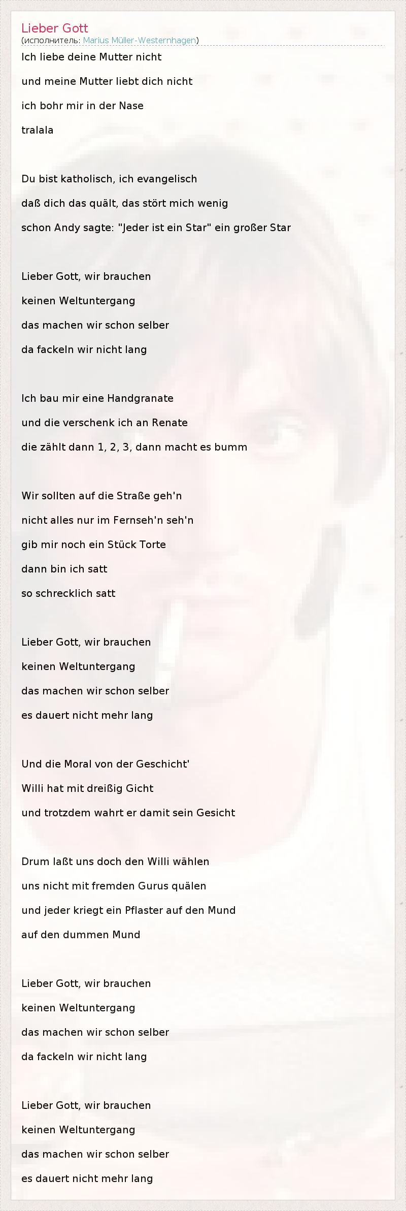 А как ты думаешь, о чем песня "Lieber Gott" ?
