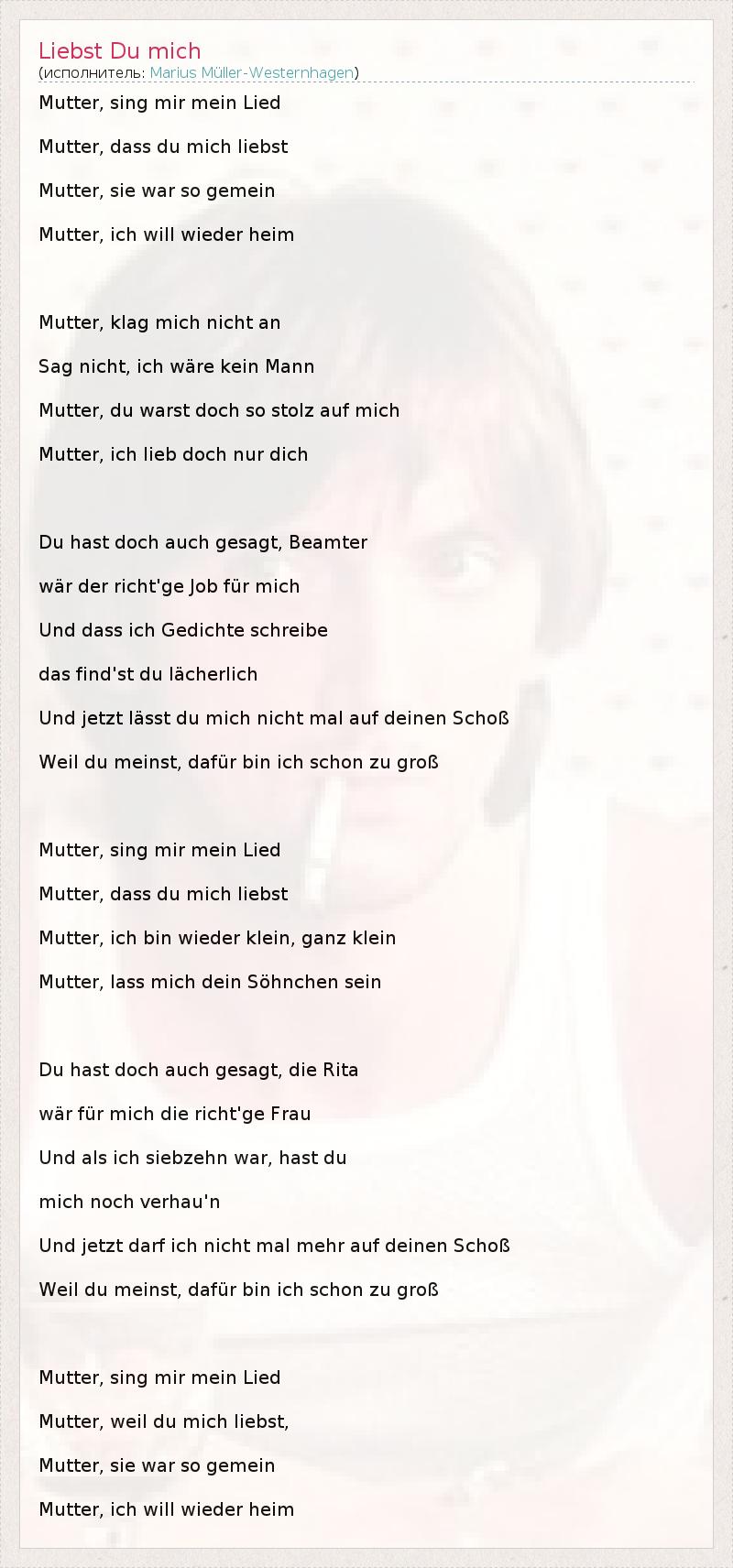 А как ты думаешь, о чем песня "Liebst Du mich" ?