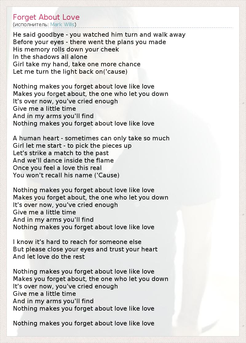 А как ты думаешь, о чем песня "Forget About Love" ?