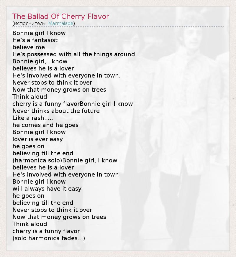 ГлавнаяИсполнителиMarmaladeThe Ballad Of Cherry Flavor