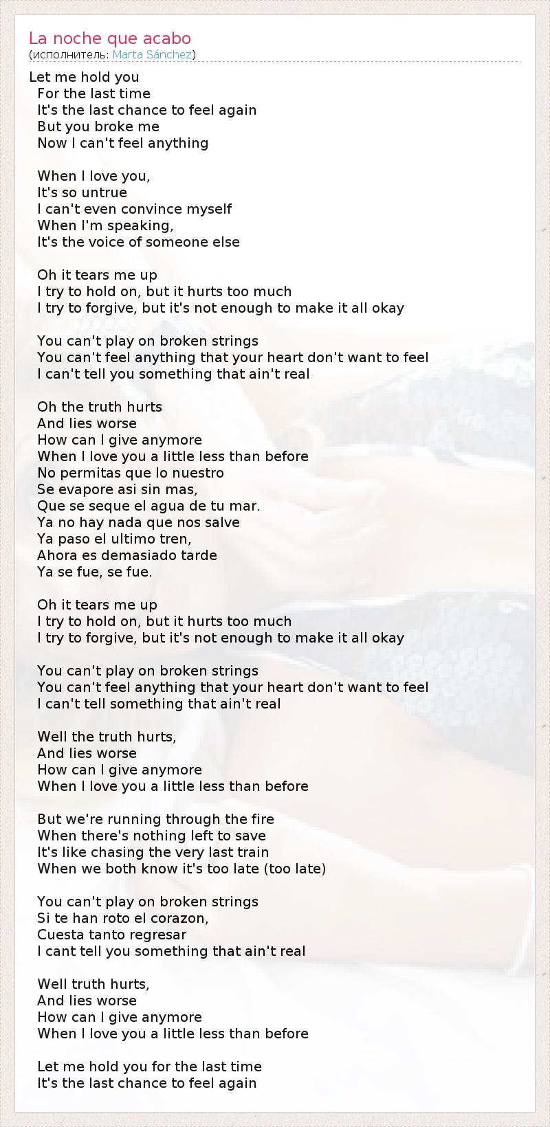 А как ты думаешь, о чем песня "La noche que acabo" ?