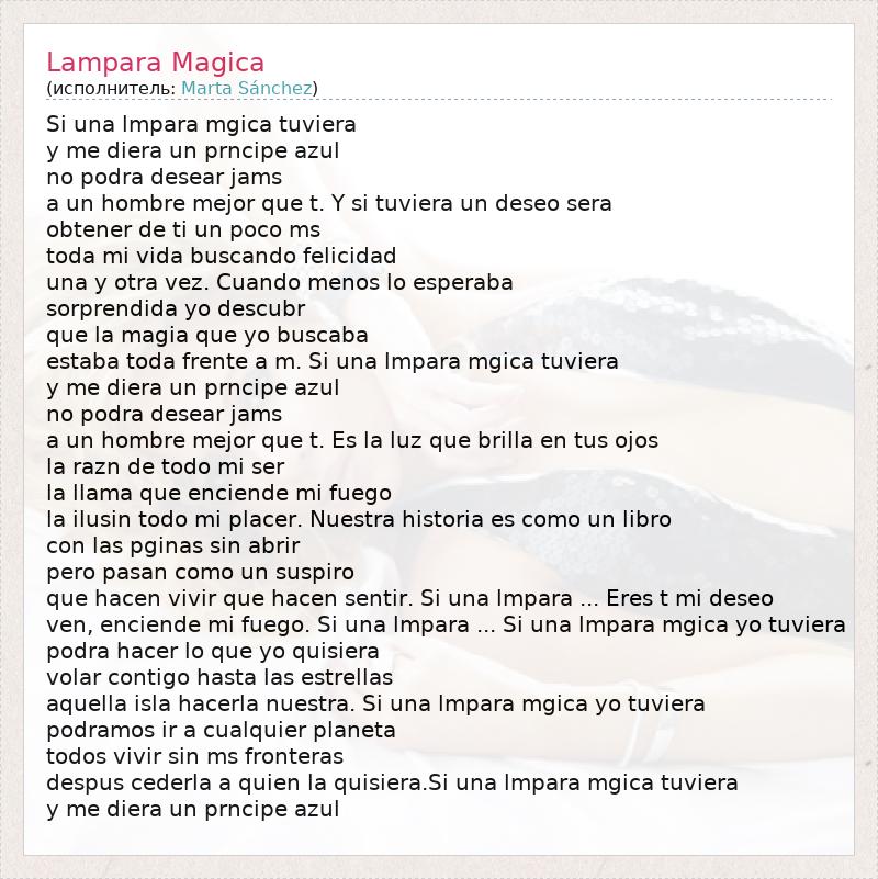 А как ты думаешь, о чем песня "Lampara Magica" ?