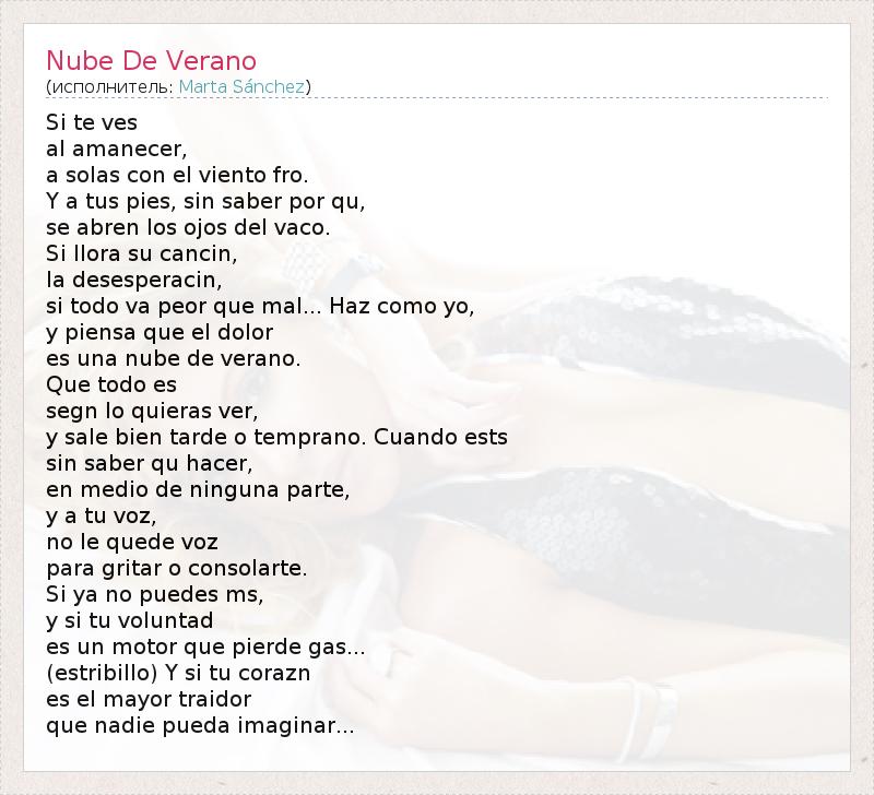А как ты думаешь, о чем песня "Nube De Verano" ?