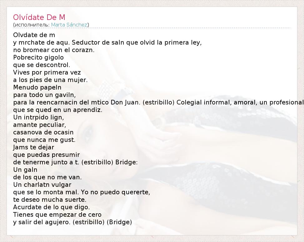 А как ты думаешь, о чем песня "Olvídate De M" ?