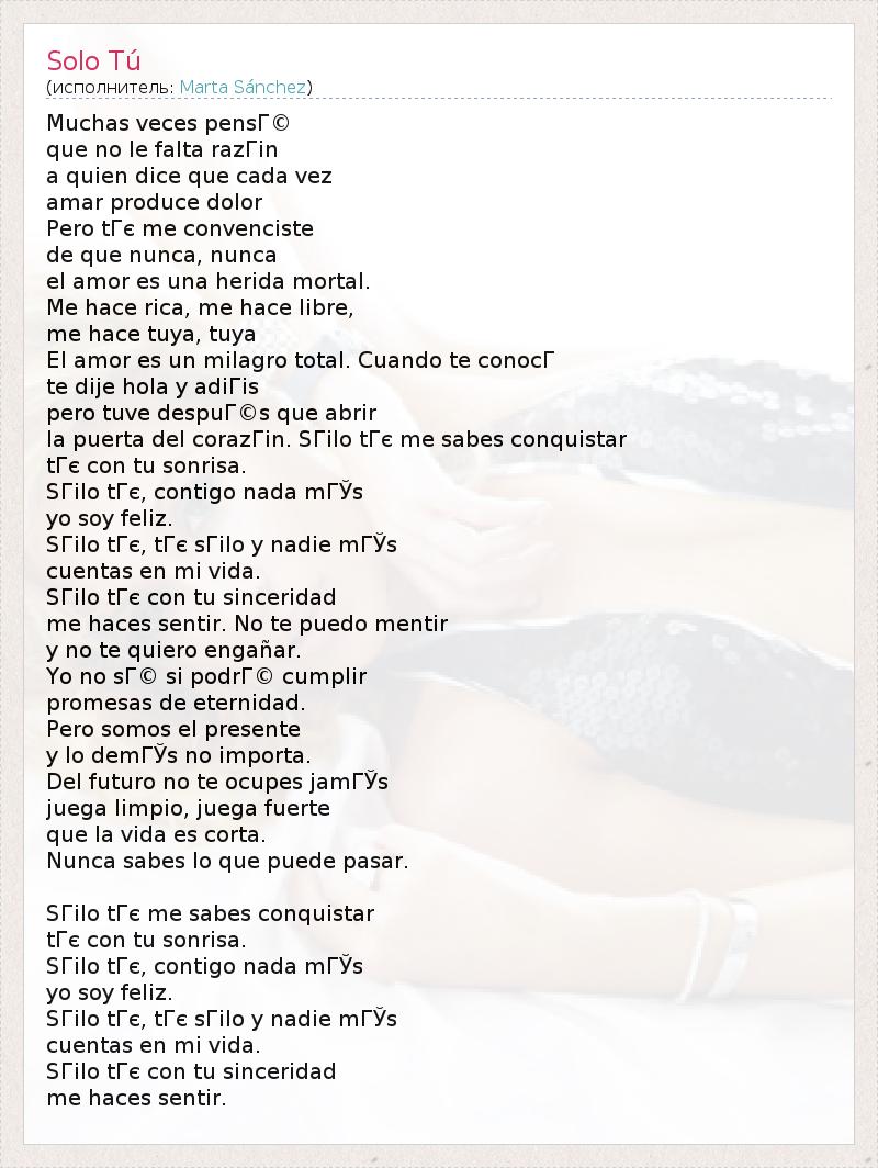 А как ты думаешь, о чем песня "Solo Tú" ?
