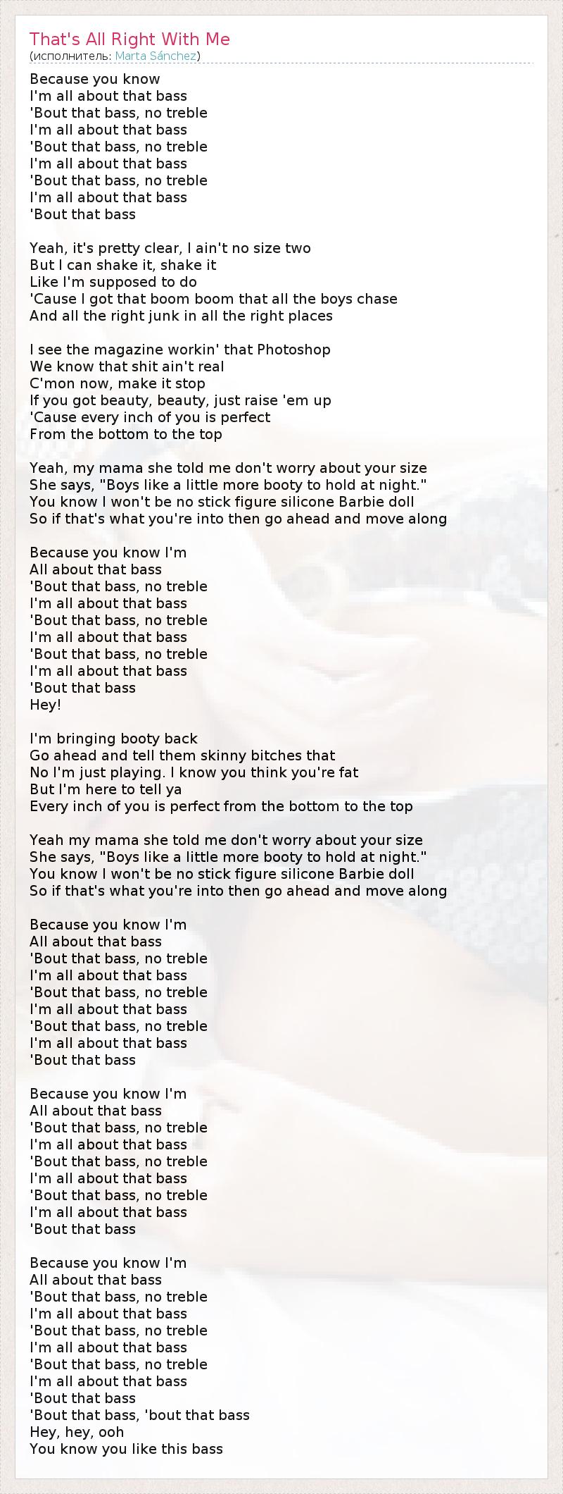 А как ты думаешь, о чем песня "That's All Right With Me" ?