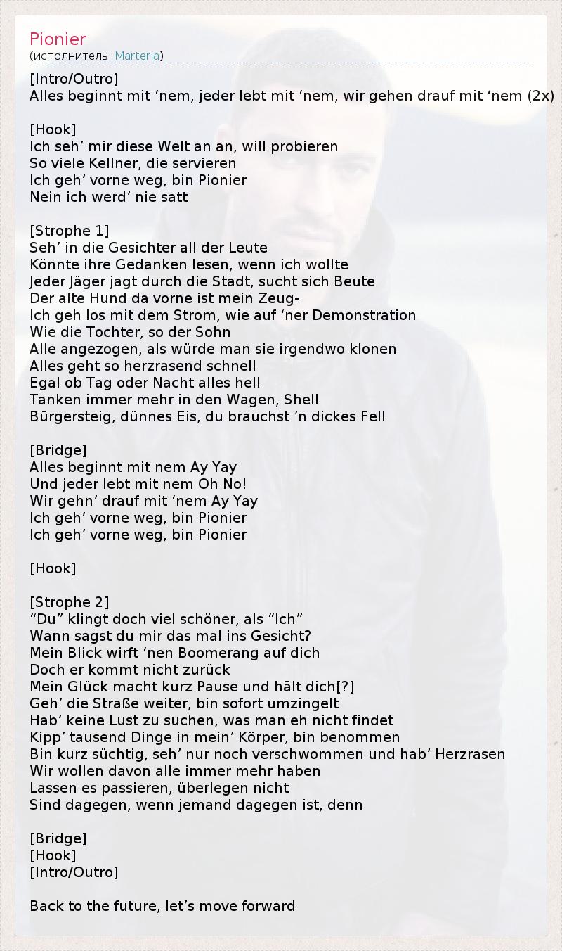 А как ты думаешь, о чем песня "Pionier" ?