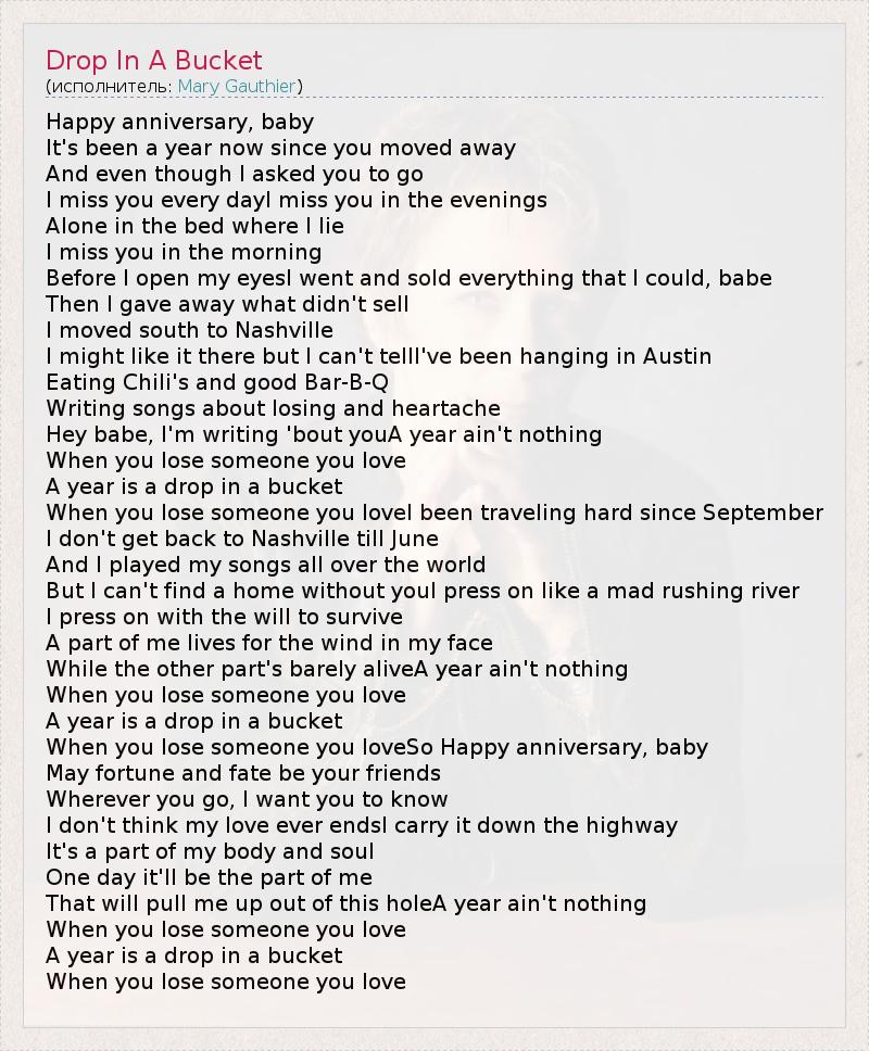 А как ты думаешь, о чем песня "Drop In A Bucket" ?