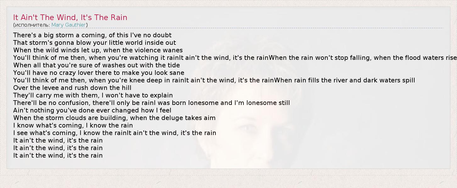 А как ты думаешь, о чем песня "It Ain't The Wind, It's The Rain" ?