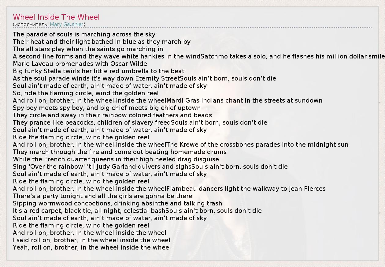 А как ты думаешь, о чем песня "Wheel Inside The Wheel" ?