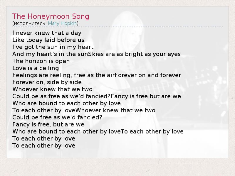 А как ты думаешь, о чем песня "The Honeymoon Song" ?