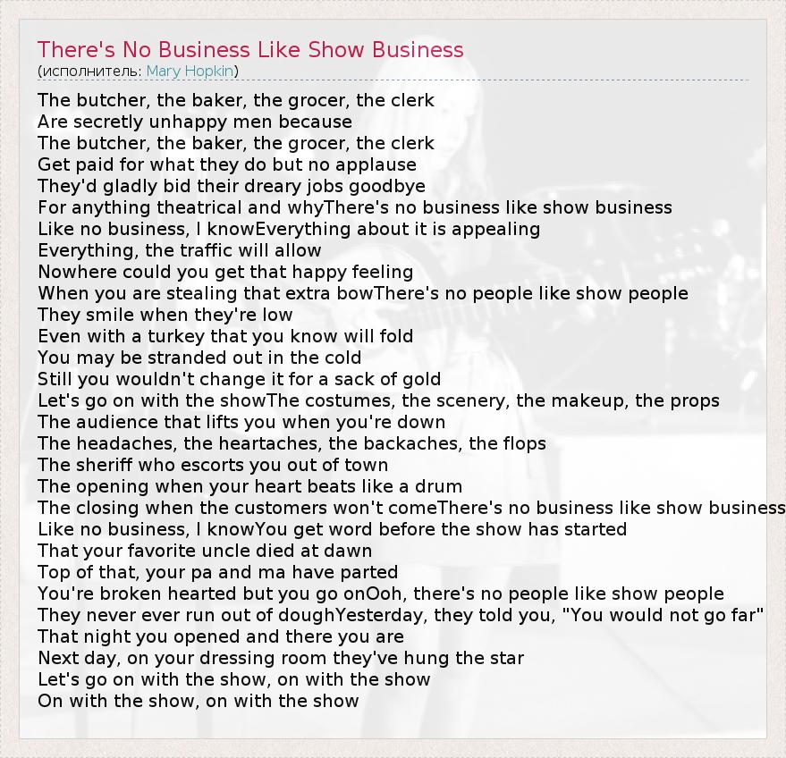 А как ты думаешь, о чем песня "There's No Business Like Show Business" ?