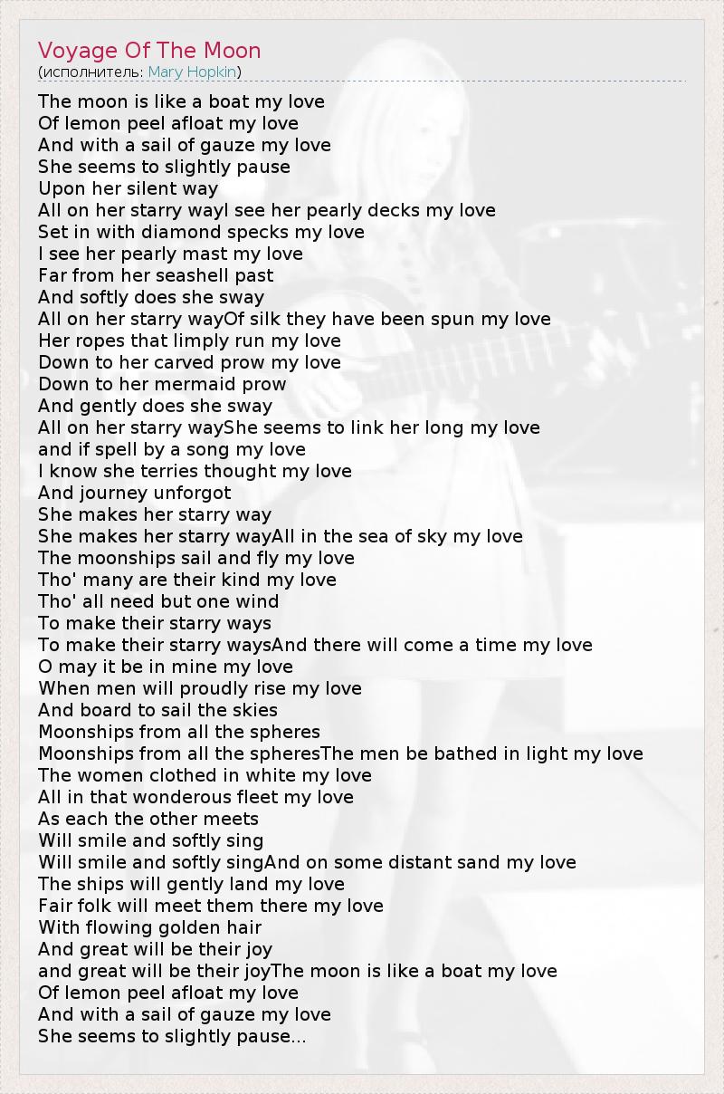 А как ты думаешь, о чем песня "Voyage Of The Moon" ?