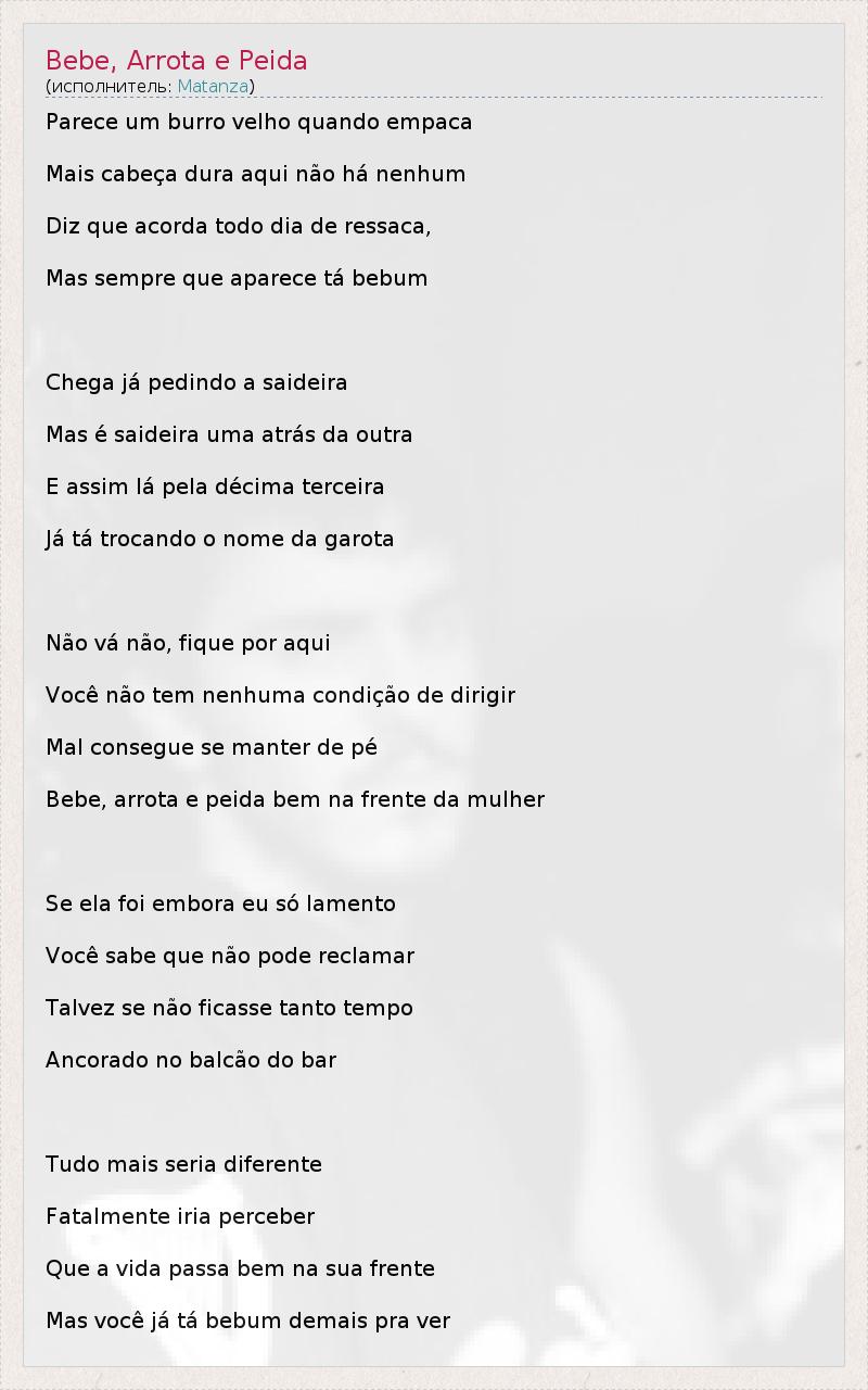 А как ты думаешь, о чем песня "Bebe, Arrota e Peida" ?