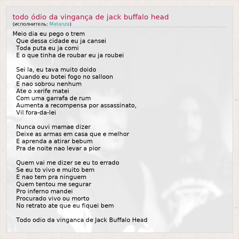 А как ты думаешь, о чем песня "todo ódio da vingança de jack buffalo head" ?