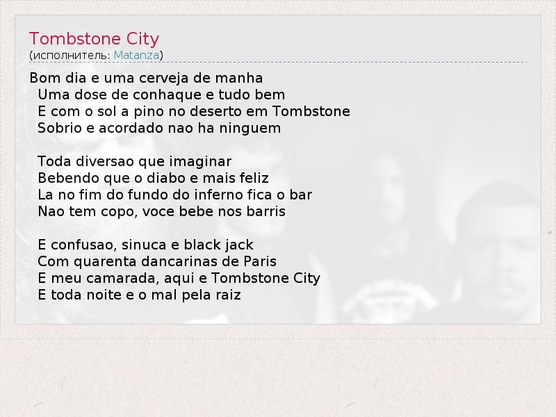 А как ты думаешь, о чем песня "Tombstone City" ?