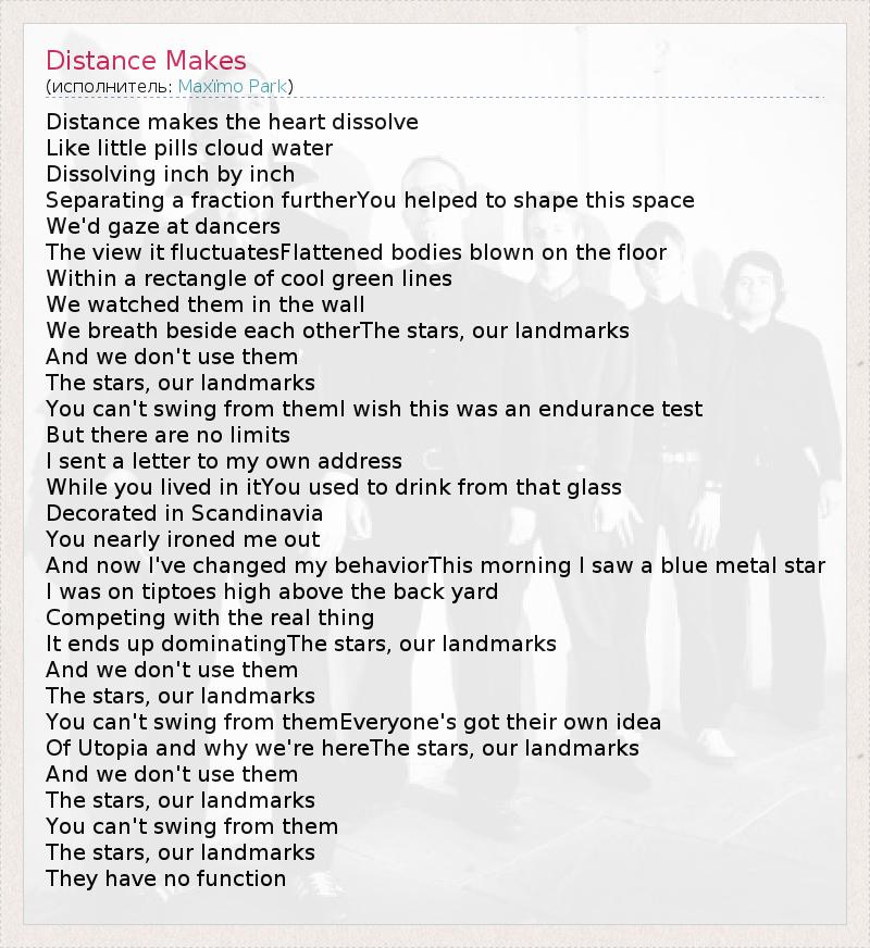 А как ты думаешь, о чем песня "Distance Makes" ?