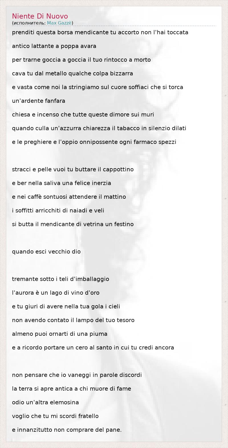 А как ты думаешь, о чем песня "Niente Di Nuovo" ?