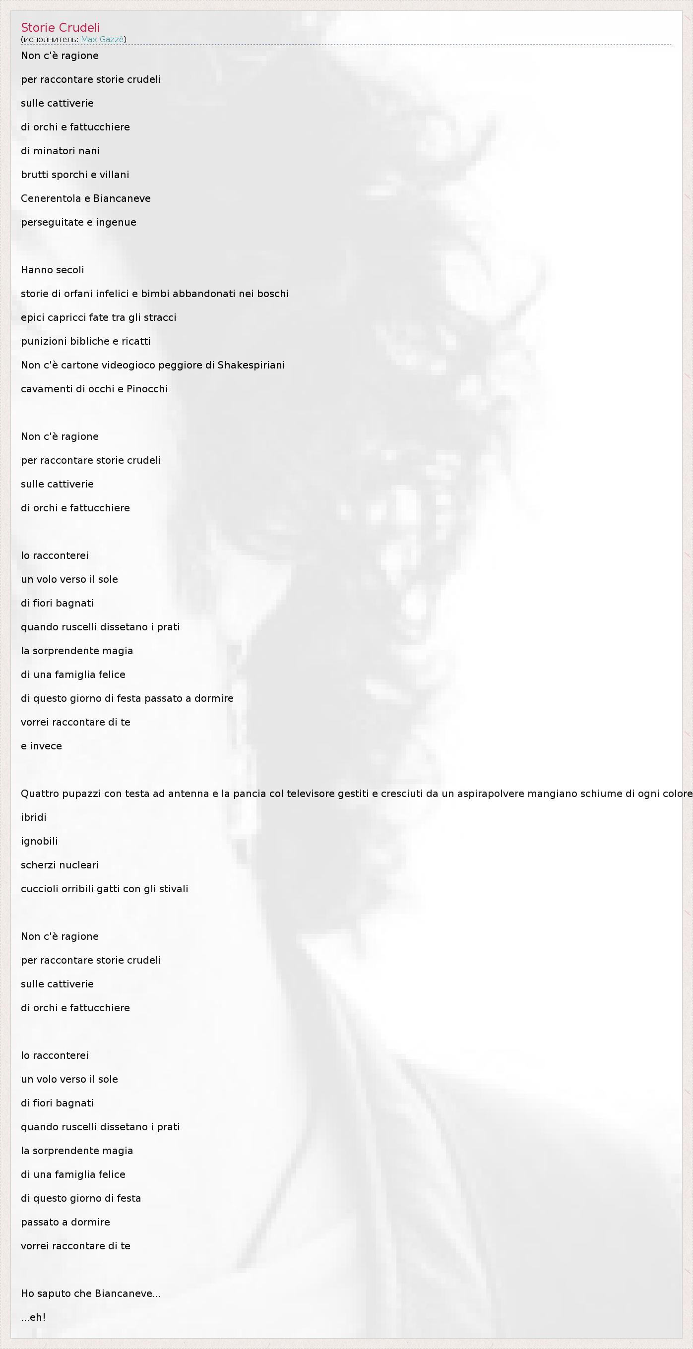 А как ты думаешь, о чем песня "Storie Crudeli" ?