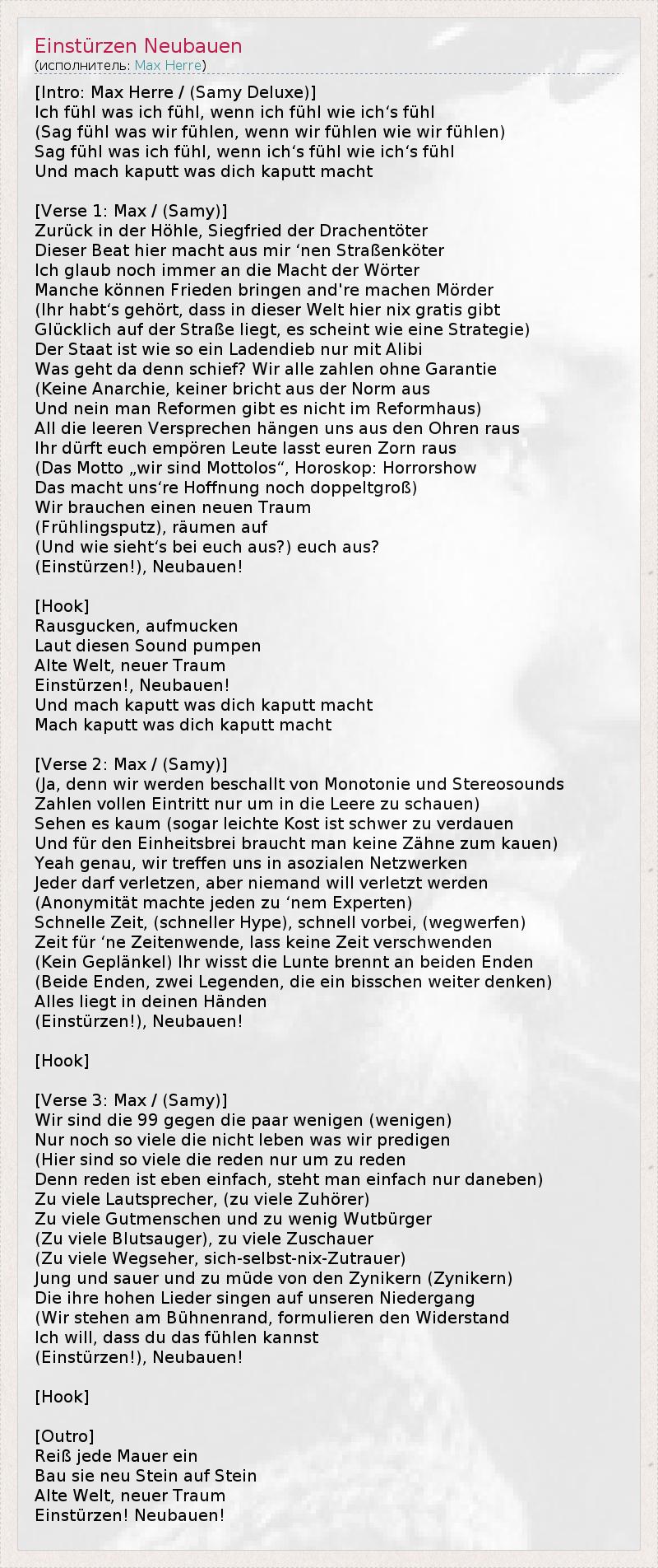 А как ты думаешь, о чем песня "Einstürzen Neubauen" ?