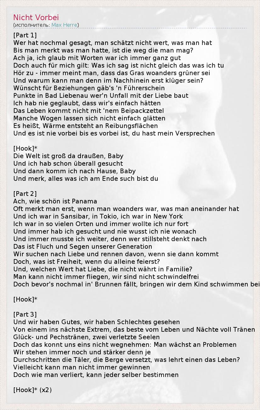 А как ты думаешь, о чем песня "Nicht Vorbei" ?