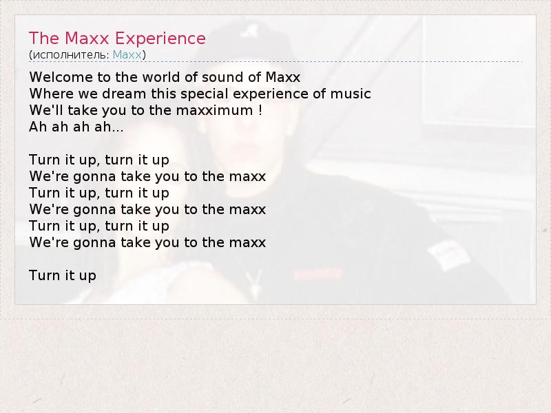 А как ты думаешь, о чем песня "The Maxx Experience" ?
