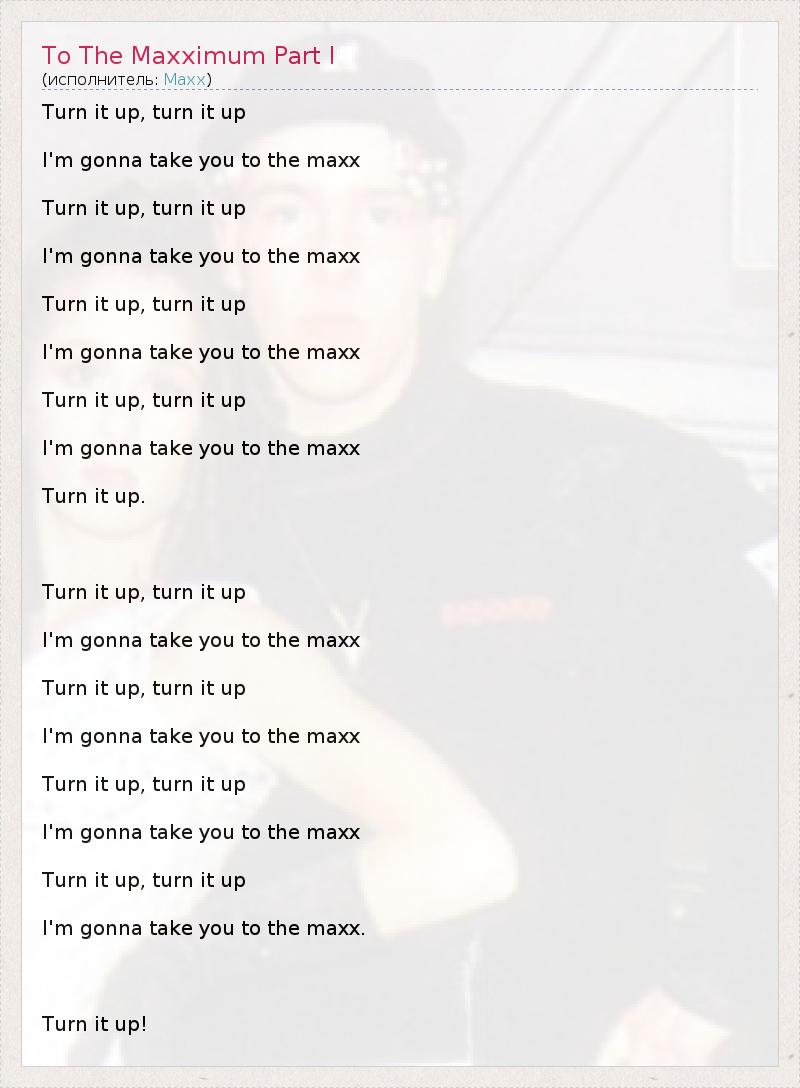 Turn it up, turn it up I'm gonna take you to the maxx Turn it up, turn it up I'm gonna take you to the maxx Turn it up, turn it up I'm gonna take you to the maxx Turn it up, turn it up I'm gonna take you to the maxx Turn it up. Turn it up, turn it up I'm gonna take you to the maxx Turn it up, turn it up I'm gonna take you to the maxx Turn it up, turn it up I'm gonna take you to the maxx Turn it up, turn it up I'm gonna take you to the maxx. Turn it up!