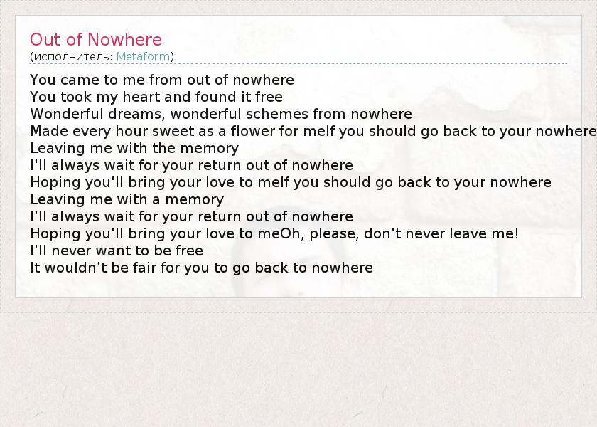 А как ты думаешь, о чем песня "Out of Nowhere" ?
