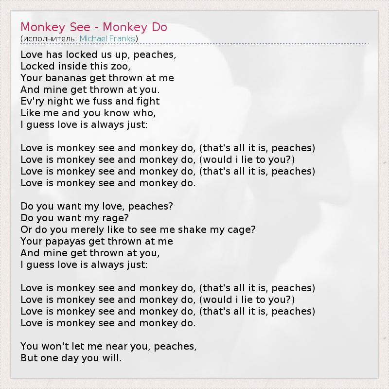 А как ты думаешь, о чем песня "Monkey See - Monkey Do" ?