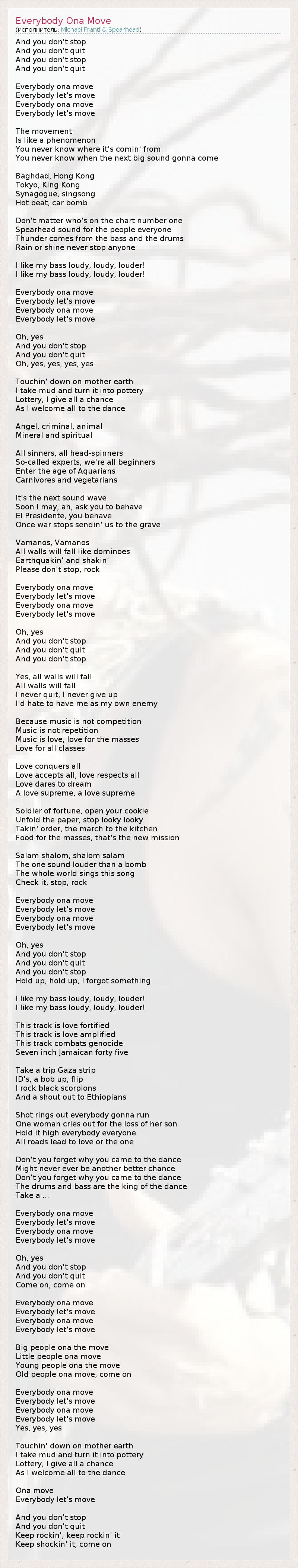 А как ты думаешь, о чем песня "Everybody Ona Move" ?