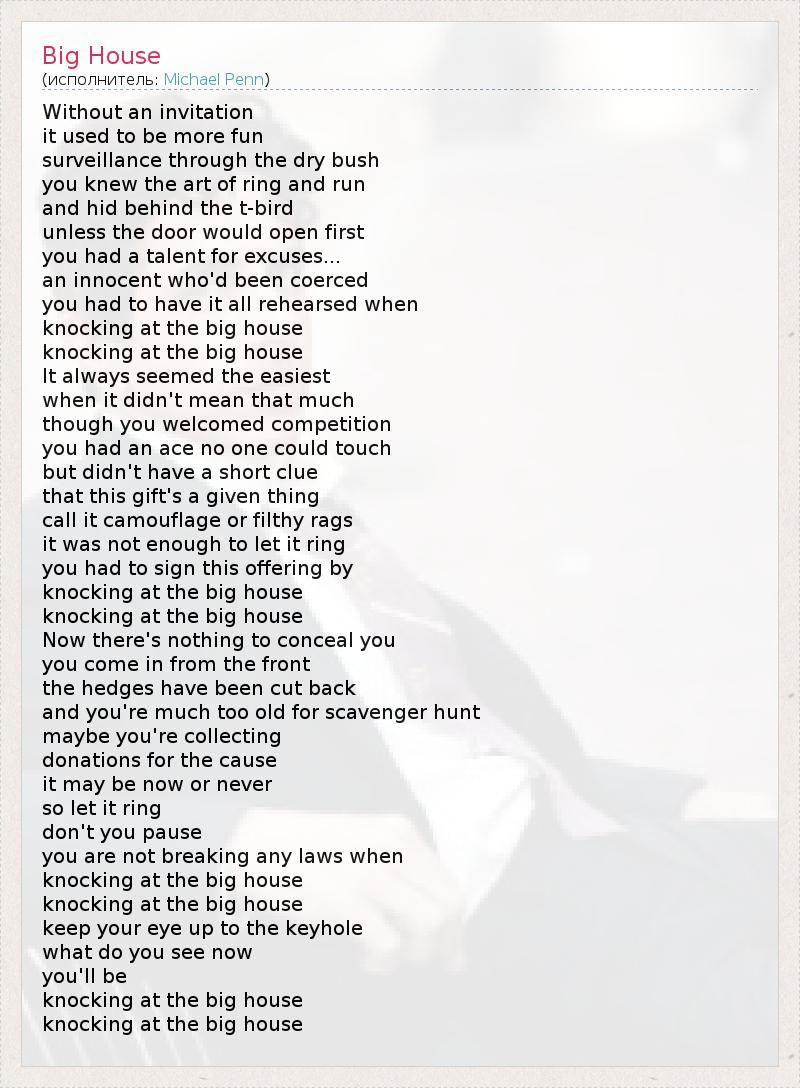 А как ты думаешь, о чем песня "Big House" ?