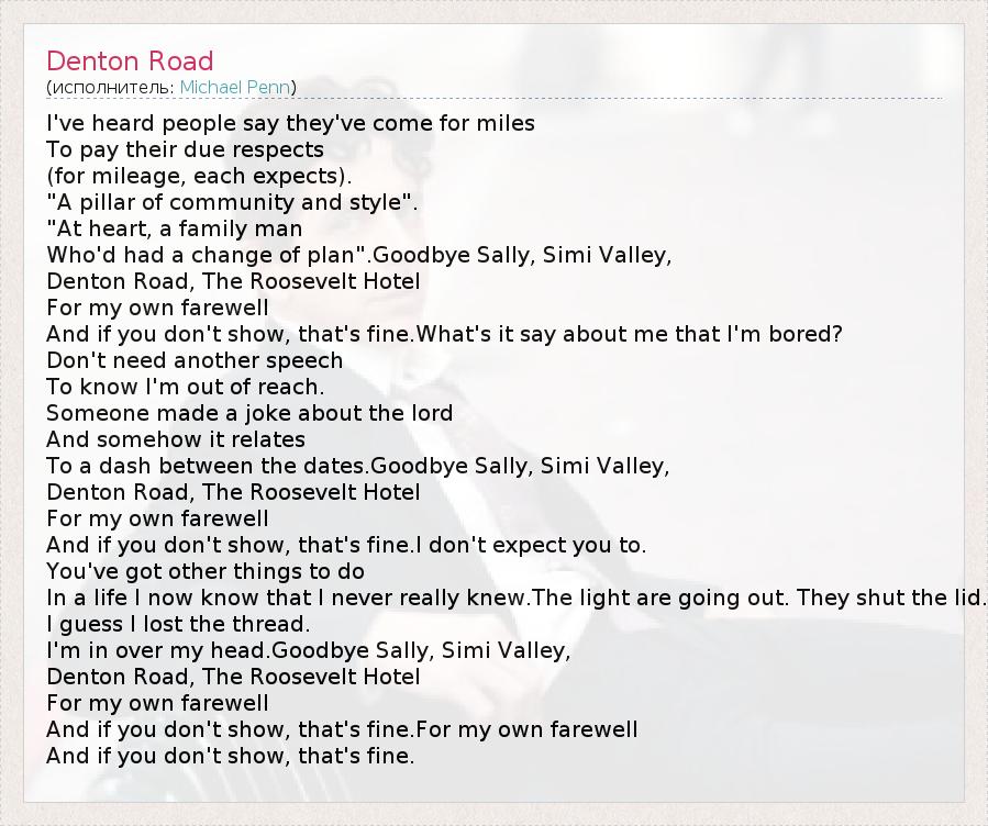 Это интересно:Майкл Пенн (родился 1 августа 1958 года в Гринвич Вилладж, Нью-Йорк) - известный американский певец и композитор. Пенн - сын актера\режиссера Лео Пенна и актриссы Эйлин Райан, и брат актеров Шона Пенна и старшего Криса Пенна.Для раскрутки своего дебютного альбома "March"в 1989 Пенн исполнил песню “This & That” со своей группой The Pull в 1987ом эпизоде "Saturday Night Live". До этого он являлся членом... продолжение