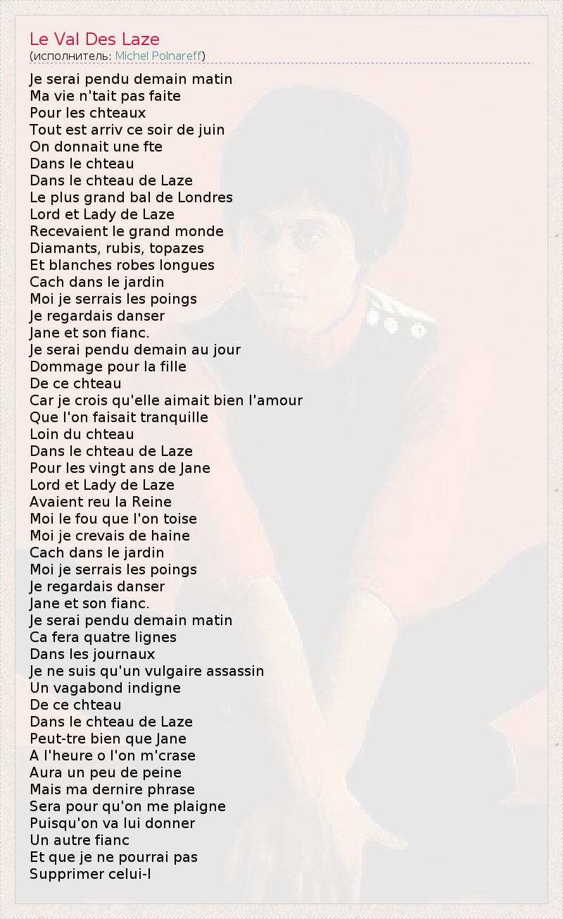А как ты думаешь, о чем песня "Le Val Des Laze" ?