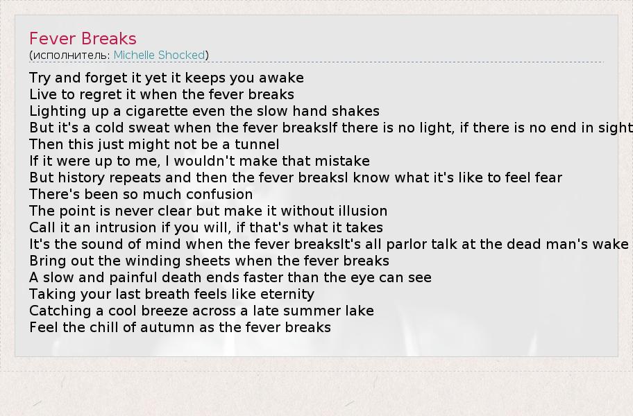 А как ты думаешь, о чем песня "Fever Breaks" ?