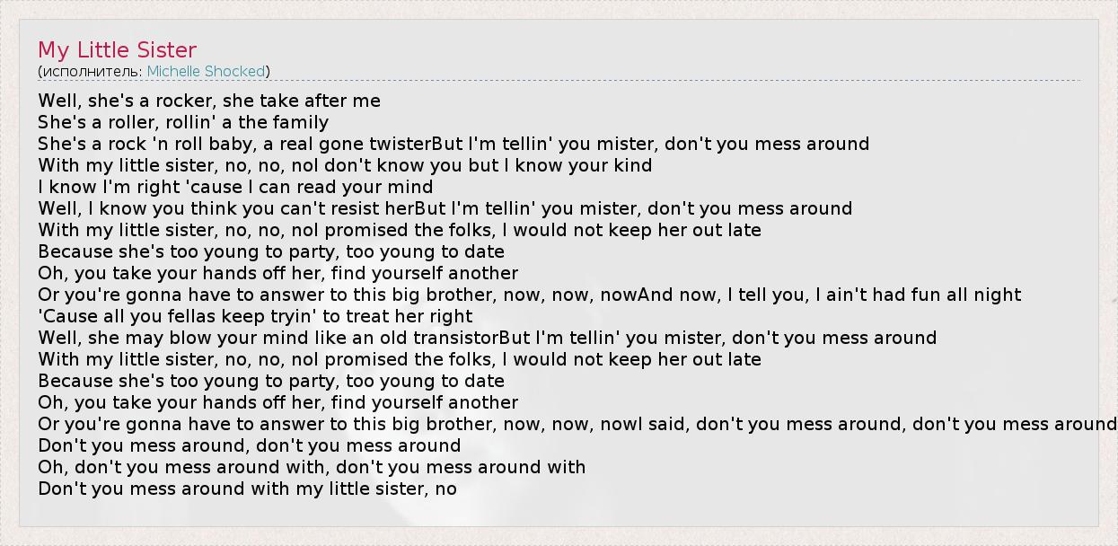 А как ты думаешь, о чем песня "My Little Sister" ?