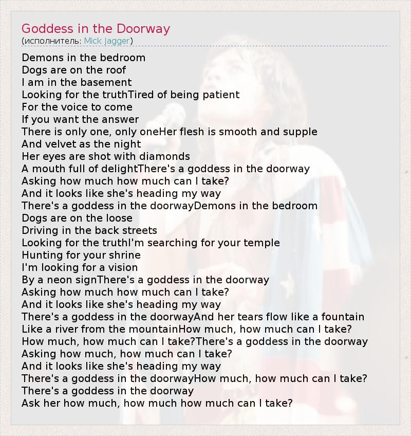 А как ты думаешь, о чем песня "Goddess in the Doorway" ?