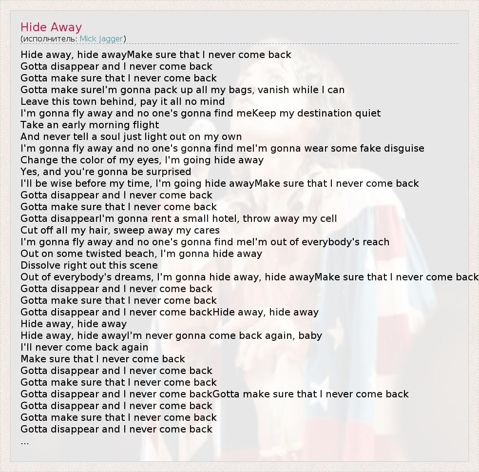 Hide away, hide awayMake sure that I never come back