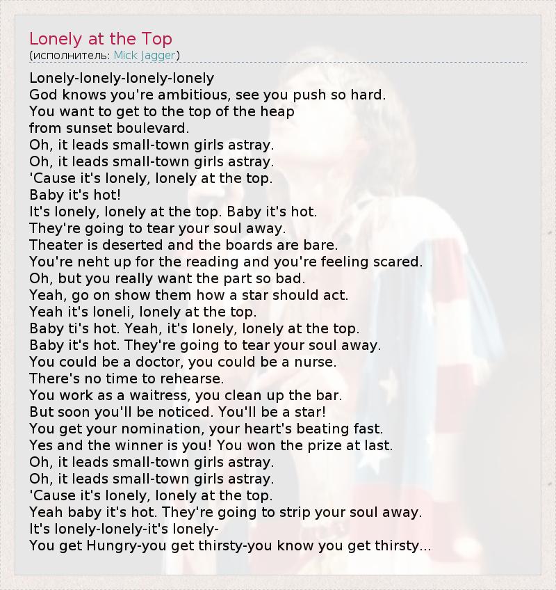 А как ты думаешь, о чем песня "Lonely at the Top" ?