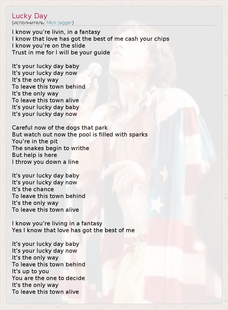 А как ты думаешь, о чем песня "Lucky Day" ?