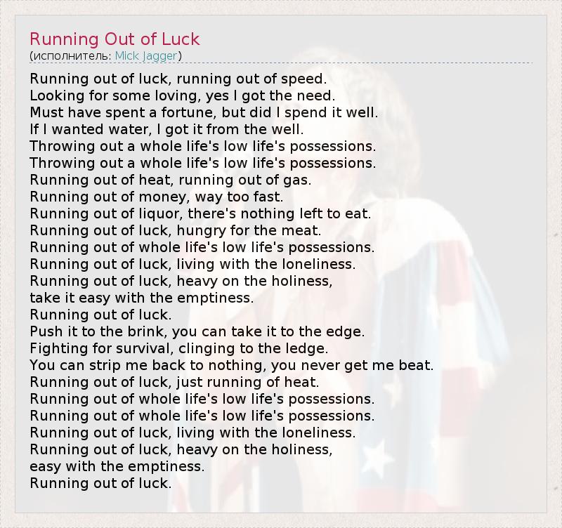 А как ты думаешь, о чем песня "Running Out of Luck" ?