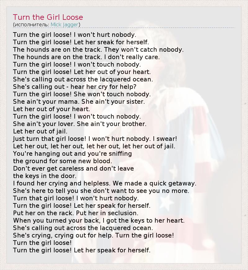 А как ты думаешь, о чем песня "Turn the Girl Loose" ?